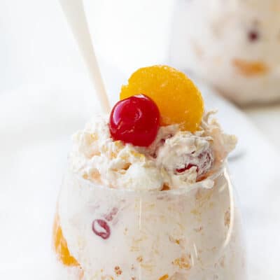 是甜点吗?是沙拉吗?我们就把这叫做甜点沙拉吧,两边都加。Ambrosia(意为希腊和罗马神的食物或味道或气味令人愉悦的食物)沙拉由三种成分组成:切片橙子、磨碎椰子和糖。如今,传统的美味沙拉的概念可能有很大的不同。加上所有的水果,这个食谱足够甜,是一种清淡、蓬松、清爽的款待。