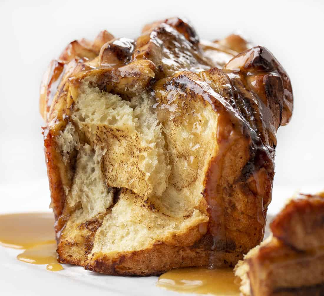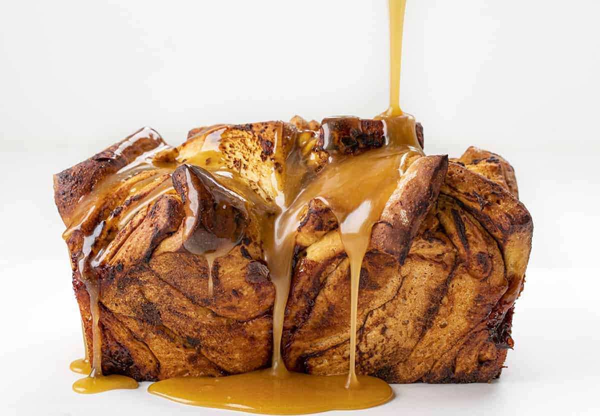 这种面包的苹果味来自于苹果黄油。这个食谱里没有苹果。而且,这是一种可以拉开的面包,但用的是烤盘而不是烤盘。不管你怎么切,我的意思是“拉”,这种面包是一种柔软而美味的面包,上面有焦糖釉,你一定要确保每一口都能吃到。