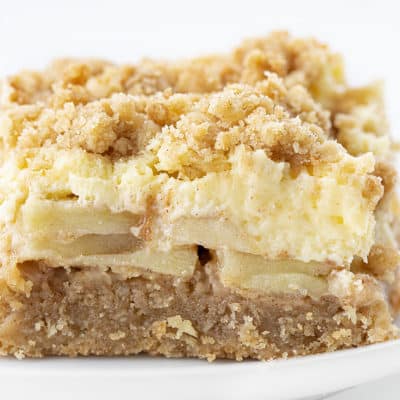 苹果奶油芝士酒吧甜点酒吧充满了甜苹果和奶油芝士层,顶部和烘烤燕麦崩溃。这是一个介于一个芝士蛋糕和苹果脆一定人群的最爱。试试我的苹果脆另一个苹果甜点的最爱!