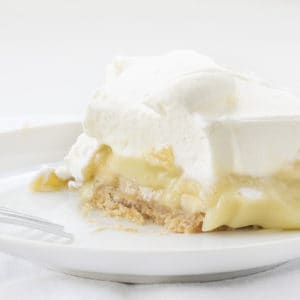 外壳:在这个食谱中,我使用了一个香草晶片地壳。然而,您还可以使用全麦地壳甚至blind-bake自制的派皮(让它酷)之前添加香蕉、填充和鞭打浇头。