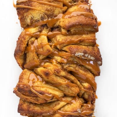 令人流馋唾水香蕉福斯特撕开面包是自制的面包,充斥着香蕉和下毛毛雨用焦糖酱。试试我的肉桂糖香蕉面包banana-flavored治疗。