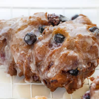 新鲜的蓝莓油炸饼是用新鲜的蓝莓和蛋糕面糊做成的,是自制的终极享受!甜甜的糖霜让这些油条显得格外诱人,甚至会让你想起填馅漏斗蛋糕。但当然更好!我最喜欢的部分?你可以在30分钟内享用美味的新鲜蓝莓馅饼!想要另一种充满蓝莓的美味早餐(或任何时候),试试我的蓝莓柠檬烤饼.