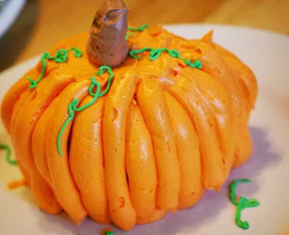 的南瓜灯的惊喜蛋糕。
