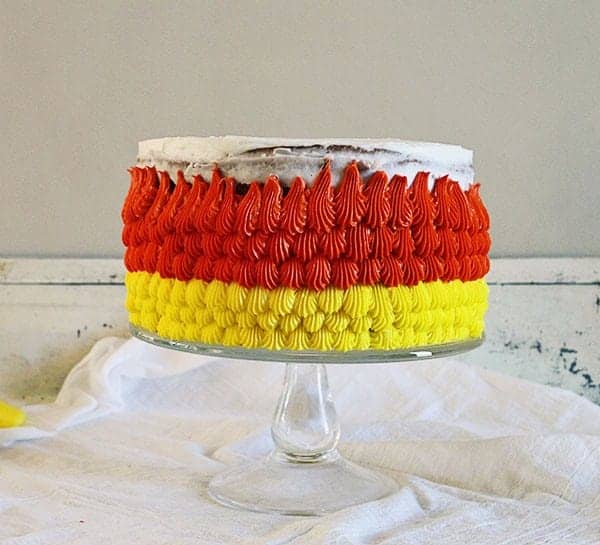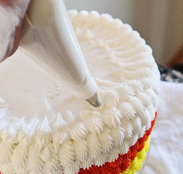 如上所示,我选择不做面包屑涂层。我想确保我有足够的糖霜!有了这两种奶油食谱我就知道了,所以我会推荐在你的蛋糕上覆盖一层白色奶油。