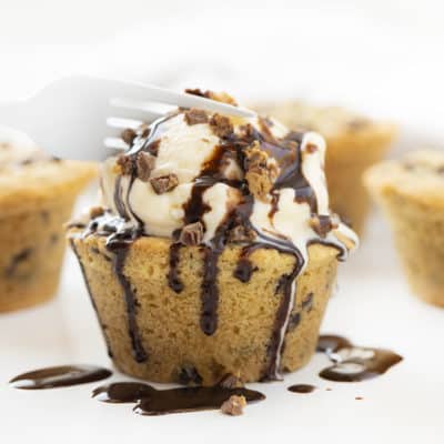 巧克力曲奇杯巧克力曲奇面团烤松饼锡惊喜迷你里斯的花生酱杯依偎在里面。如果你只是渴望巧克力曲奇,看看我自制的巧克力片饼干食谱。