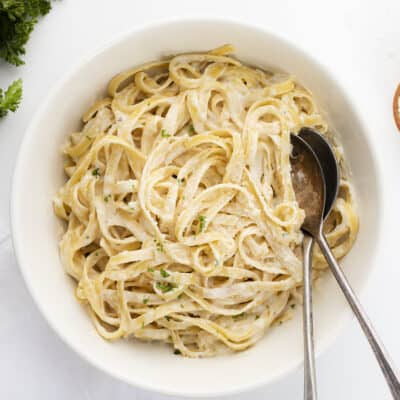 这款阿尔弗雷多酱的配料很少,但味道的美妙之处却熠熠生光。酱汁很美,粘稠如丝,让我想起了高级餐厅,但味道很纯正。要做出完美的意大利宽面条,其中一个方法就是确保你的食材都是最好的品质。我喜欢挥霍,买一块上等的帕玛森奶酪,然后自己磨碎。而且,要想更上一层楼,你可以自己做自制的意大利面!