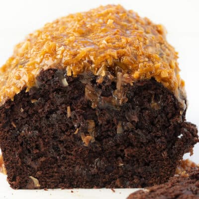 这一切都从a开始三层巧克力香蕉面包这道食谱。这种面包由可可粉、牛奶巧克力和半甜巧克力制成,以赋予它巧克力的味道。然后,在混合物中加入香蕉是巧克力的完美补充。似乎这还不够美味,咸焦糖椰子釉让你以为你在咬一口甜萨摩亚或焦糖饼干!