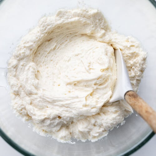 切换到搅蛋器。加入香草和混合高7 - 8分钟,或直到平滑和奶油糖霜。