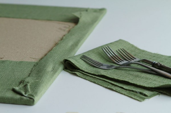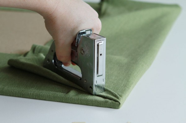 然后简单包装板周围的面料,开始装订。我总是拉紧和主要中心,然后我到角落。