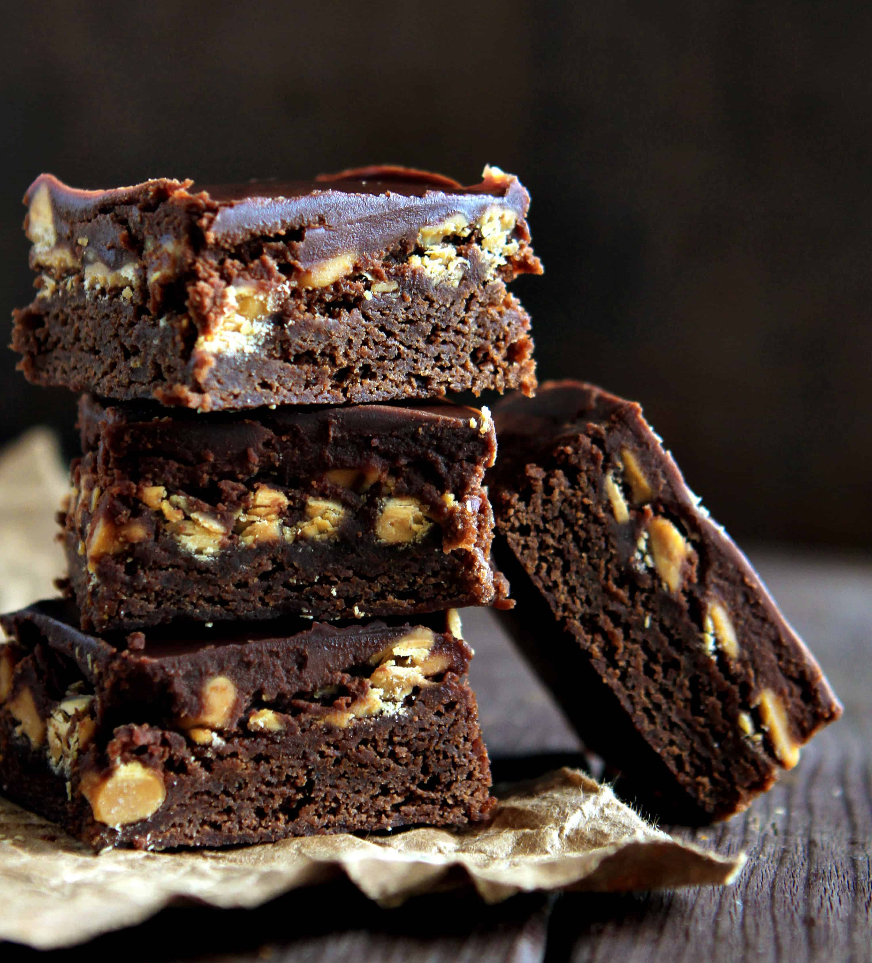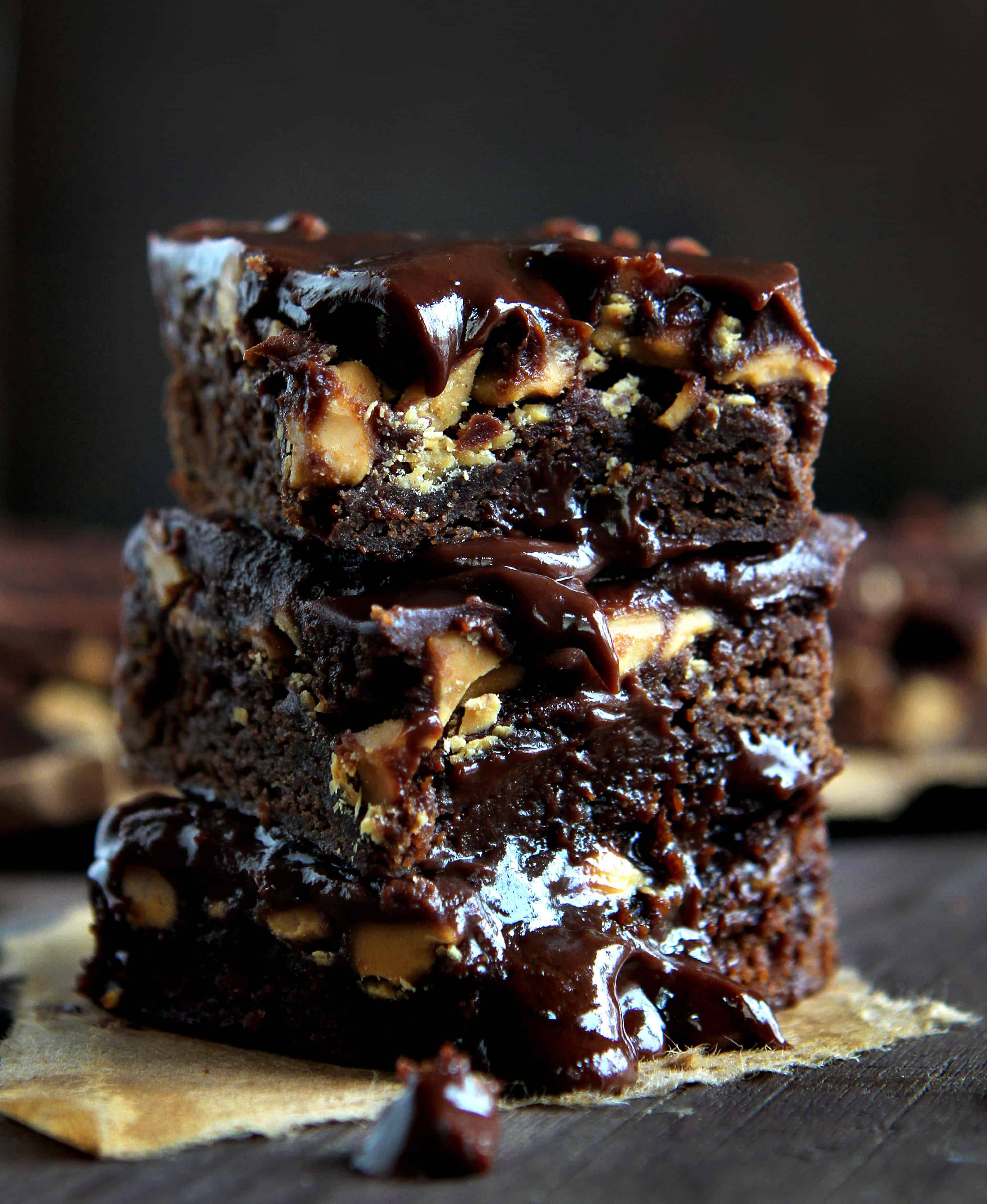 多么令人难以置信的美味的布朗尼!我真的无法忘记花生酱奶油糖果甘纳许的样子和声音。哇。