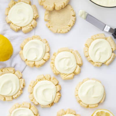 柠檬糖饼干软糖饼干只有一点柠檬的味道和覆盖着一个可爱的淡黄色柠檬糖霜。另一个夏季饼干的最爱,一定要看看我Ooey-Gooey柠檬饼干!