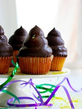 美味的黄色纸杯蛋糕覆盖着甜美的糖霜,轻轻蘸着巧克力,你不会错的。第一口超赞,第二口又那么满足。