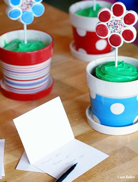 这些“花盆”有多有趣?它只不过是绿色糖霜的巧克力蛋糕和一块棉花糖花在中间!