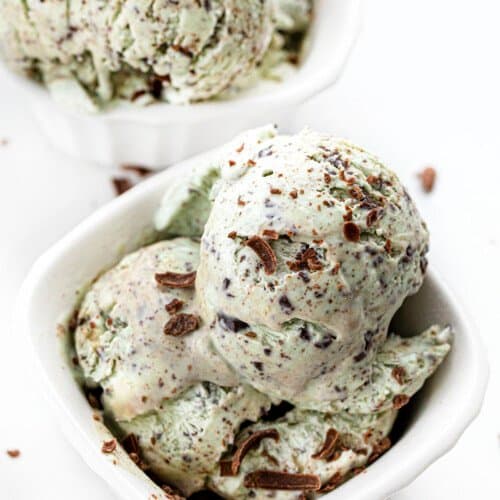 No-Churn薄荷巧克力冰淇淋奶油,自制的薄荷冰淇淋含有块巧克力。一定要试一试我的其他no-churn冰淇淋香草,蓝莓,巧克力!