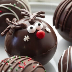 摩卡炸弹是巧克力球,里面装满了浓缩咖啡粉和咖啡奶油,在热水中“爆炸”,释放出咖啡因,开始你的一天!如果你喜欢热可可胜过摩卡,加我的热巧克力炸弹换成一杯热牛奶。