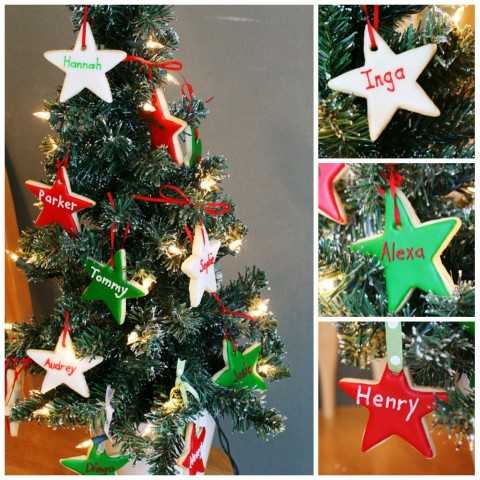 这是饼干树。我做了大约两打星饼干和增加孩子的名字我知道。我真的希望他们能展示更多的电视上,这样你可能会说“嘿!看!这是我宝宝的名字在饼干!”