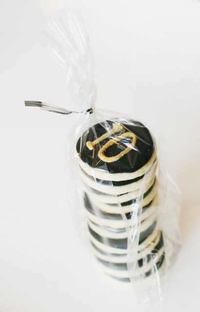 这些糖饼干覆盖在我的特别皇家结冰有色黑色。这些数字都写在白色皇家结冰和覆盖着金色的油漆和黄金闪光。