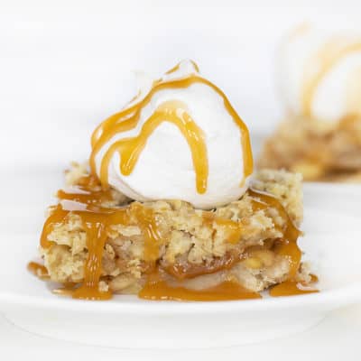 燕麦焦糖苹果棒是一种甜点,里面装满了甜苹果和一层焦糖,上面烤着燕麦碎。试试我的最好的苹果酥再来一道美味的苹果甜点!
