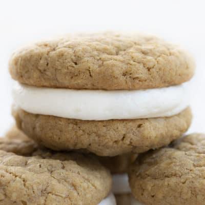 有两部分recipe-the柔软,耐嚼的燕麦曲奇饼和奶油馅。