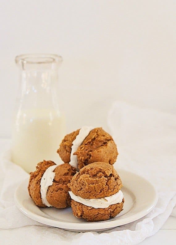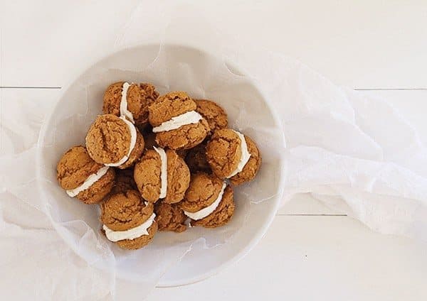 玛莎的食谱里有棕色黄油糖霜,但我手头没有所有的材料。我们都知道我有这个对饼干三明治的痴迷所以我想找一种更厚、更结实的糖霜来做南瓜饼干三明治。