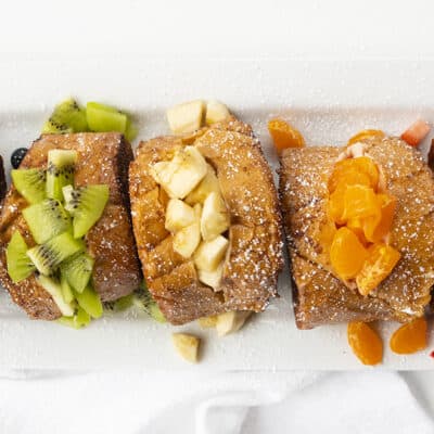 水果:在每一片填充的法式吐司上放上你最喜欢的水果。事实上,我甚至可以不加糖浆,只加水果配料!通过使用各种水果浇头,你可以使用一种类型的奶油奶酪混合物,这将节省你很多时间。
