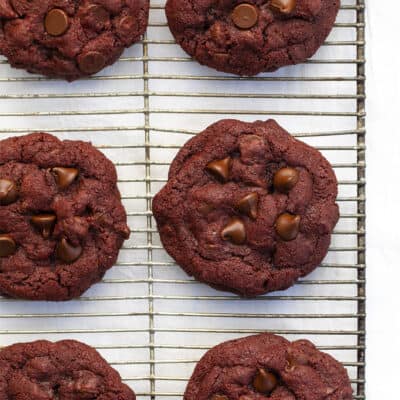 这款柔软,有嚼劲,美味的红丝绒饼干具有传统巧克力的所有丰富的优点巧克力饼干但是带有有趣和喜庆的红色调,非常适合情人节、圣诞节或任何其他特殊场合。在烘烤之前,在上面撒上一些额外的巧克力片,让你的蛋糕更加美味!