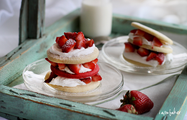 饼干在你的盘子里。现在一块奶油。一些草莓。和重复。