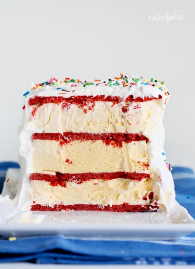 红色天鹅绒奶油奶酪冰淇淋三明治。这些是我的最喜欢的。我甚至可能会下毛毛雨融化的巧克力在顶部和添加洒这已经颓废的治疗。