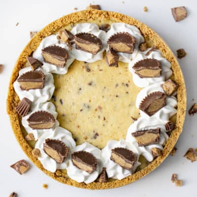 瑞茜的芝士蛋糕馅饼的馅是柔滑的奶油芝士和比特里斯的花生酱杯混合在一起,所有的黄油全麦地壳。很容易,然而如此丰富和美味,这将是你的首选甜点,孩子和大人都爱!