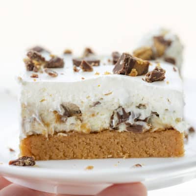 Reese’s Peanut Butter Bars are a dessert that has a peanut butter cookie crust topped with a cream cheese mixture full of chunks of Reese’s Peanut Butter Cups. For another Reese’s Peanut Butter Cup dessert, try myPeanut Butter Reese’s Cheesecake in a Jar.