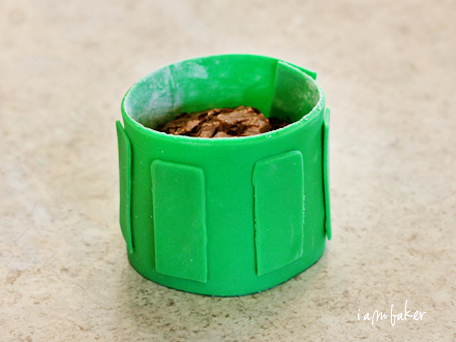 接下来,您可以添加处理!把你的绿色方旦糖,推出“蛇”,或长圆形的地带。形式的处理形状和着手干。因为我急于让这些,我把把手放进烤箱170度15 - 20分钟。这干出来足以让他们保持他们的形状。