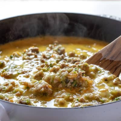 如果你想自己做香肠,看看我的早餐香肠肉饼食谱!你可以用这个食谱来准备你自己的香料香肠,加到你的香肠和西葫芦早餐煎锅里。做起来真的很简单,而且香肠的味道和香料都很足。