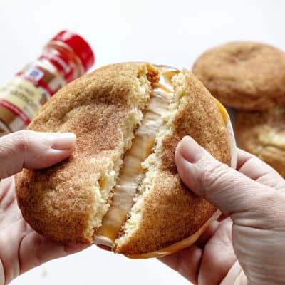 完美的三明治饼干必须有两件事…一个软,耐嚼,非常可口的饼干和填充,可以站起来。这种饼干三明治有各种!我做了我的gydF4y2BaSnickerdoodle饼干食谱gydF4y2Ba变成了一个巨大的版本,然后用肉桂棉花糖补充糖霜和焦糖浇头。但人,我没有创建这个秘方老原因…实际上是一个非常特殊的原因!gydF4y2Ba
