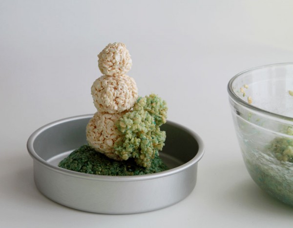 我建立了简单的创建圆形球的雪人krispy对待,大然后做一个小开始,然后小于。