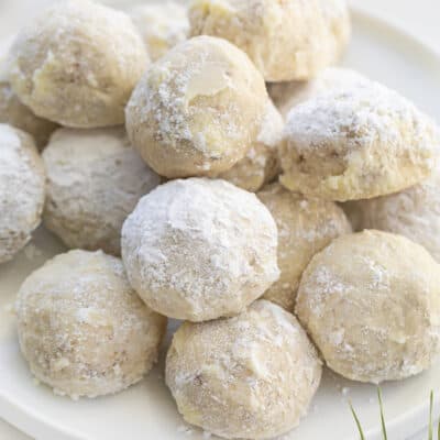 雪球饼干,也被称为俄罗斯茶饼和墨西哥婚礼饼干(以及其他),是经典的节日饼干。但是,当你想吃坚果的时候,它们很容易做。而且,它们看起来像小雪球,这对我来说很有用,因为我们这里有很多雪!