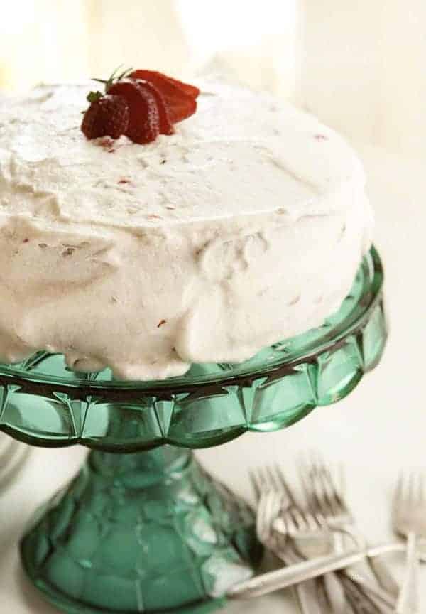 很兴奋这个蛋糕…现在坐在冰箱因为糖霜变成汤。冷藏组装前的糖霜蛋糕但是没有太多帮助。可能有助于省略草莓的牛奶,除非你确信你不会加太多水分就像我。Hoping the taste outweighs the appearance. Thanks for a yummy recipe!!