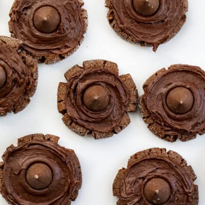 三重巧克力花给你一个三重威胁的巧克力饼干,巧克力糖霜,和一个好时的吻在上面!试试我的花生酱花!
