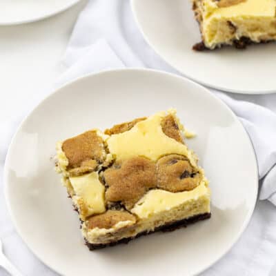 滴一茶匙饼干面团在芝士蛋糕上。