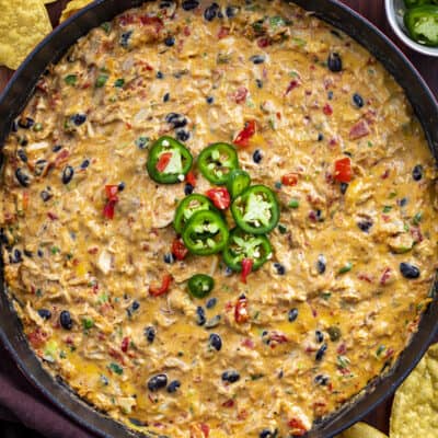 鸡肉和Velveeta奶酪蘸酱是一种煎锅蘸酱,将烤鸡的味道、Velveeta奶酪块和新鲜蔬菜结合在一起,是一款令人惊叹的比赛日开胃菜!我们也爱培根牧场芝士球年代和培根,墨西哥胡椒!