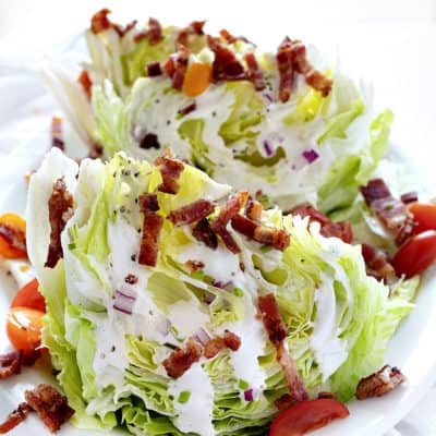 - 蓝奶酪或沙拉酱:我们住在中西部,大家都知道我们什么都要加牧场酱,包括这道楔形沙拉。事实上,我甚至自己做沙拉酱.传统上,蓝纹奶酪是楔形沙拉的调味料,但这完全取决于你的喜好!