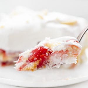 减少一半的樱桃饼馅天使蛋糕的多维数据集。gydF4y2Ba