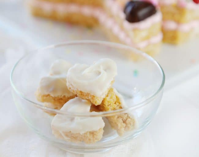 你发现有趣的提示在那里吗?使用XO的残渣大米krispy图样迷你的心!我把迷你心与洒白巧克力,然后覆盖一些。这些可以装饰任何你所希望的方式和孩子们一定玩得开心。将它们添加上你的XO请客!