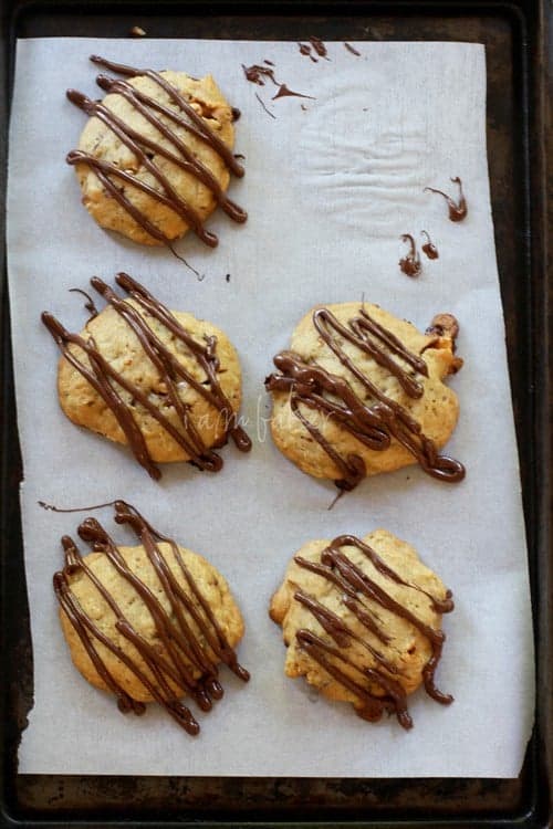 在我最初的食谱中,我只加了两个士力架,但我觉得他们需要更多。所以我决定加起来是4。然而,在这一点上很难确定这些饼干是西葫芦,因为它们尝起来非常甜。如果你是一个纯粹主义者,想要一种干净的味道,那就吃两片切碎的巧克力吧。
